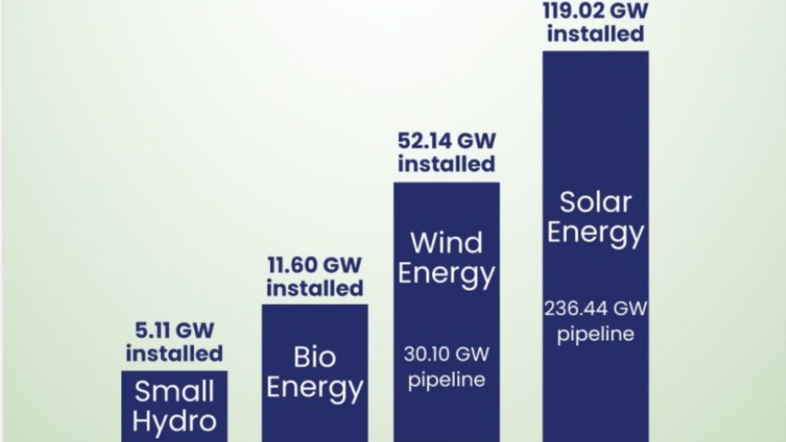 Breaking down the 187.87 GW figure reveals solar panels, also known as PV modules, are leading the charge with 72 GW, followed by wind at 54 GW. Biomass and small hydro fill the gaps.